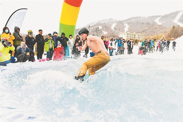 開幕式結(jié)束后,參加活動的發(fā)燒友們乘纜車前往三鍋盔山頂參加光豬大滑行活動。此次光豬節(jié)由亞布力滑雪旅游度假區(qū)主辦,亞布力陽光度假村承辦。在長達(dá)146天的超長雪季后,亞布力陽光度假村將于3月29日正式封板。圖片由亞布力陽光度假村提供