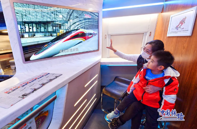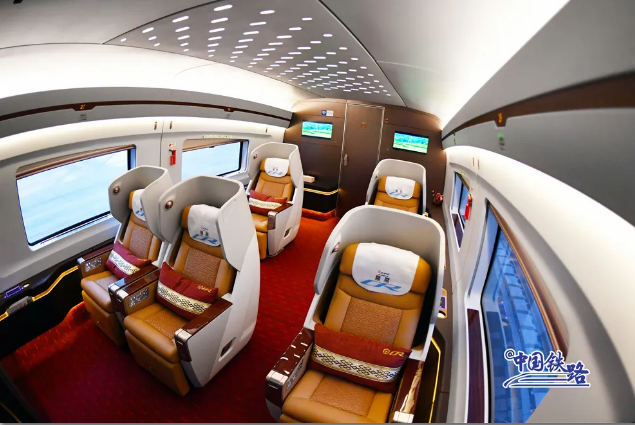 復(fù)興號智能動車組車廂內(nèi)的服務(wù)設(shè)施進(jìn)行了智能化升級,進(jìn)入隧道時(shí),列車可智能控制車內(nèi)壓力,提前調(diào)節(jié)燈光、車窗顏色等。