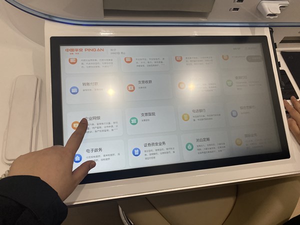 記者看到,智能網(wǎng)點既適老也適小。在互動體驗區(qū),由9塊顯示屏拼接而成的屏幕區(qū)格外引人注意。顯示屏分別顯示著網(wǎng)點的理財產(chǎn)品、營銷數(shù)據(jù)等,每15分鐘就會進行一次更新。不僅如此,客戶還可以在這里玩游戲、拍照片。李權介紹,很多時候,客戶的焦慮來自等待,一些帶著孩子來辦理業(yè)務的客戶,最怕小朋友無聊,通過互動體驗區(qū),小朋友可以在屏幕前玩游戲,這樣客戶辦理業(yè)務時也能更安心?!拔覀兊姆諈^(qū)域用來滿足客戶日常業(yè)務辦理需求,而游戲、特色景點、交通、美食等混業(yè)信息的交互則能消除顧客的等候焦慮?!崩顧嗾f道。
