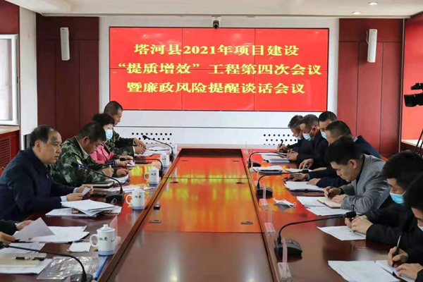 黑龍江經(jīng)濟網(wǎng)訊(王超 石佰龍 記者馬朝林)5月31日,塔河縣2021年項目建設“提質(zhì)增效”工程第四次會議暨廉政風險提醒談話會議在縣委四樓會議室召開,縣委書記林建軍、縣長宋波出席會議并講話,縣委常委、副縣長張躍科,副縣長劉淑艷、鄂旭杰、劉煜及項目、財經(jīng)相關(guān)單位負責人參加會議。