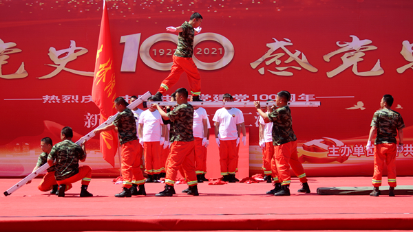 新林林業(yè)局黨委副書(shū)記、局長(zhǎng)張鶴松為演出致辭。演出在森林消防二大隊(duì)隊(duì)員激昂的鼓聲中拉開(kāi)了帷幕,本次文藝匯演共13個(gè)節(jié)目,通過(guò)歌舞、詩(shī)朗誦、快板、大合唱等形式,回顧黨的光輝歷程,謳歌黨的豐功偉績(jī)。