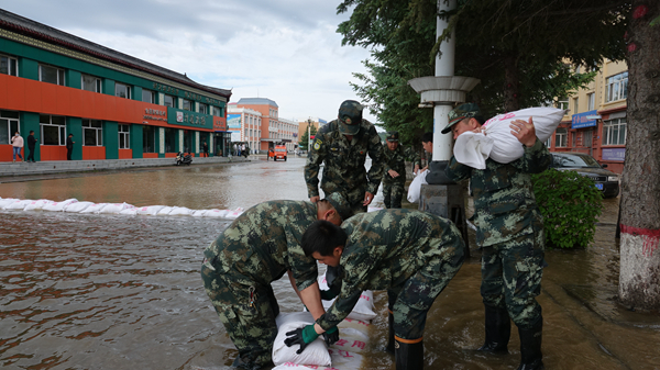 18日凌晨,記者在位于塔河鎮(zhèn)中央大街東端的塔河農(nóng)商銀行機(jī)關(guān)辦公樓前看到,漲勢(shì)很快的洪水正迅猛地漫過中央大街,向街邊的農(nóng)商銀行機(jī)關(guān)大樓、稅務(wù)局辦公樓和電視臺(tái)辦公樓等處涌來,而這幾個(gè)沿街單位地勢(shì)較低,很容易受到洪水的侵襲。為盡量控制洪水水勢(shì),最大限度減少洪水造成的損失,塔河縣防指迅速調(diào)集人力物力,主要領(lǐng)導(dǎo)靠前指揮,廣大救援官兵奮勇爭先,在幾個(gè)臨街單位外圍用沙袋圍壩攔堵,并調(diào)動(dòng)多臺(tái)高壓水泵抽水抗?jié)?,給幾個(gè)單位的救援提供了極大地助力,也為其自救創(chuàng)造了更多的時(shí)機(jī)。