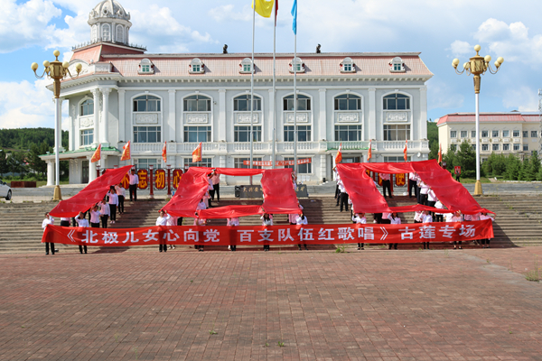 開展“高歌頌黨恩 永遠(yuǎn)跟黨走”唱紅歌活動(dòng)。在生產(chǎn)一線、機(jī)關(guān)科室的400多名黨員干部、職工群眾用百米長(zhǎng)幅歌頌黨、感謝黨,齊聲高唱《沒有共產(chǎn)黨就沒有新中國(guó)》《歌唱祖國(guó)》,激情嘹亮的歌聲唱出了對(duì)中國(guó)共產(chǎn)黨的熱愛和禮贊。全體隊(duì)員還用黨旗和紅綢擺出了100的造型,以特殊的方式向建黨100周年獻(xiàn)禮,充分展現(xiàn)了新時(shí)代林區(qū)礦山人愛黨愛國(guó)的精神風(fēng)貌。