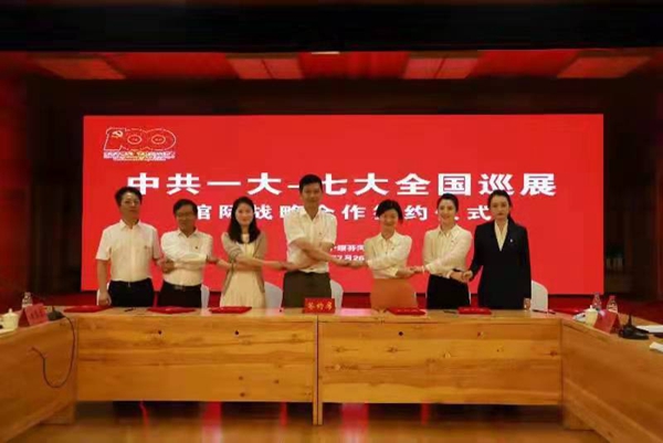 啟動儀式后,為加強館際交流,促進共同發(fā)展,更好地實現(xiàn)資源共享,還舉行了中共一大至七大全國巡展館際戰(zhàn)略合作簽約儀式。各展館在理論研討、主題教育、隊伍培養(yǎng)、網(wǎng)絡(luò)宣傳、陳列展覽、信息交流等方面將開展館際交流活動,進一步互聯(lián)、互補、互動,推動多方工作聯(lián)動開展。