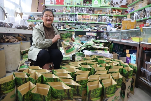 藍領山特產(chǎn)品店經(jīng)營業(yè)戶高桂杰正在為客戶發(fā)貨