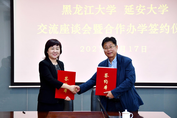王永清書記介紹了黑龍江大學的總體辦學情況,指出黑大與延安大學同根同源,是中國共產黨在延安時期親手創(chuàng)辦的紅色大學,具有優(yōu)良的革命傳統(tǒng)和光輝的辦學歷程。此次學校本著優(yōu)勢互補、資源共享、平等互利、合作共贏的原則,與延安大學共同搭建合作平臺,希望雙方未來繼續(xù)發(fā)揮各自優(yōu)勢,在思想政治理論課建設,研究生培養(yǎng),師資隊伍建設,學術合作交流等方面開展務實合作,為更多學子提供學習平臺。