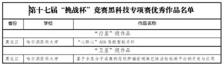 黑龍江經(jīng)濟(jì)網(wǎng)訊(黑龍江日報全媒體見習(xí)記者董廣碩 商祺)近日,第十七屆“挑戰(zhàn)杯”全國大學(xué)生課外學(xué)術(shù)科技作品競賽落下帷幕,哈爾濱醫(yī)科大學(xué)附屬二院團(tuán)隊《“心聯(lián)心”AED急救智能手環(huán)》和哈醫(yī)大附屬腫瘤醫(yī)院團(tuán)隊《基于全息分子成像系統(tǒng)的惡性腫瘤前哨淋巴結(jié)活檢檢測平臺的開發(fā)與應(yīng)用》兩個作品在“黑科技”專項賽終審決賽中,分別榮獲“行星級”和“衛(wèi)星級”稱號。