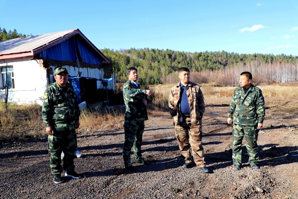 圖為阿木爾林業(yè)局黨委書(shū)記胡守慶(中)深入到龍河林場(chǎng)查看利用閑置房產(chǎn)改造成精品民宿情況。王力 攝