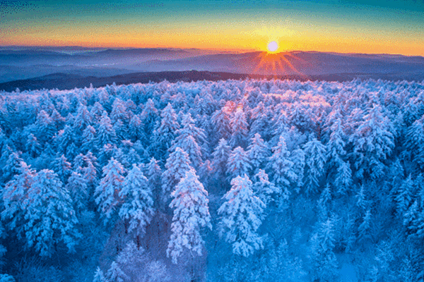 伊春擁有400萬(wàn)公頃的浩瀚森林,高達(dá)83.8%的森林覆蓋率,交相輝映的茫茫林海與皚皚白雪,萬(wàn)里冰封、壯美遼闊的小興安嶺,構(gòu)成了這個(gè)冬天最浩瀚壯美的景色。夏季的天然氧吧,在冬季化為了冰雪童話世界。大雪過(guò)后,五營(yíng)國(guó)家森林公園之中,千樹萬(wàn)樹猶如梨花盛開,描繪著冬日的醉人景象。
