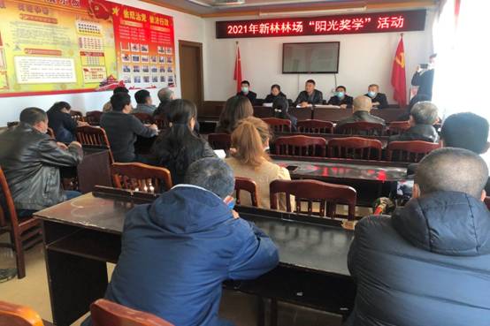 圖為新林林場(chǎng)班子成員為職工發(fā)放陽(yáng)光獎(jiǎng)學(xué)金(楊光 攝)