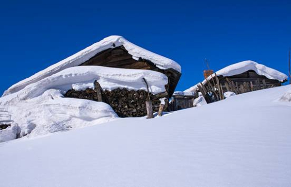 這里的降雪期長(zhǎng)達(dá)半年,每年累積降雪厚度達(dá)2米,獨(dú)特的小氣候造就了隨物賦形的雪檐,千姿百態(tài)的雪簾,變化多端的雪蘑菇,只有到了這里,才能領(lǐng)略到山舞銀蛇,原馳蠟象,欲與天公試比高的冰雪奇觀。積雪在風(fēng)力的作用下其狀好似奔馬、臥兔、神龜、巨蘑……千姿百態(tài),仿佛是天上的朵朵白云飄落。 雪村人在自家掛起大紅燈籠,潔白如玉的白雪在大紅燈籠的映襯下,溫柔喜慶,幻化無(wú)窮。