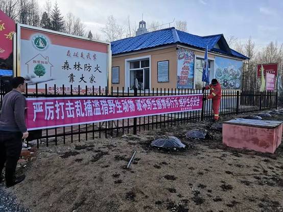富樂林場充分利用微信群、美篇、手機短信等多種形式進行宣傳,在主要街道向群眾發(fā)放宣傳單60余份,對各入山要道、各檢查站等重點區(qū)域懸掛“禁止采集野生興安杜鵑”宣傳標語3幅、宣傳彩旗20面。通過廣泛宣傳發(fā)動人民群眾,對違法破壞資源行為進行舉報,并設立監(jiān)督舉報電話、舉報信箱2個,堅決遏制破壞資源行為。