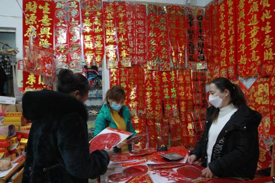 節(jié)慶用品的攤位上,受年輕人喜歡的LED串燈,小朋友們愛不釋手的虎年燈籠,老人們必買的吉祥年畫,讓人目不暇接。在陳娟超市的入口處,樹立著醒目的防疫提示牌,顧客需自覺地掃碼、測溫、帶口罩方可進入超市購買商品。超市的工作人員忙著將一車車貨物上架補貨,各種各樣的新鮮蔬菜和五顏六色的水果擺滿貨臺,老百姓需要的年貨應(yīng)有盡有。由于市場人流量密集,超市嚴(yán)格遵守人員、貨品、場所等各項疫情防控要求,每天都有專人進行消殺,在滿足職工群眾購買年貨需求的同時,確保了職工群眾的健康安全。