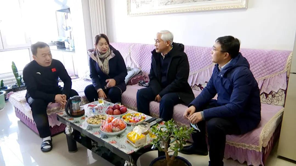 在高亭宇家中,周英東與高亭宇的父親親切交談,詳細(xì)詢問了高亭宇的成長歷程、家中的生活、平時訓(xùn)練、學(xué)業(yè)等方面的情況并為高亭宇的父親送上了慰問品和節(jié)日的美好祝福。同時通過家人向正在參賽的高亭宇加油鼓勁,希望高亭宇全力參賽,在冬奧會賽場上取得優(yōu)異成績,為國爭光、為家鄉(xiāng)添彩。