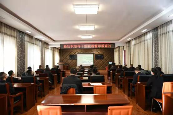 會后,新任職干部代表做表態(tài)發(fā)言。還組織新任職領導干部集體觀看了警示教育片《蠅貪之害》,用違紀違法真實案例,警示領導干部要嚴格要求自己,不斷增強政治定力、紀律定力和抗腐拒變的能力。