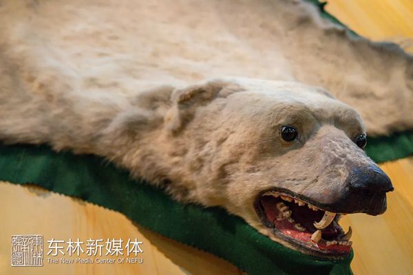 1997年經(jīng)哈爾濱毛皮廠轉(zhuǎn)至東北林業(yè)大學,是極具歷史年代感的皮毛。該標本高2.77米,寬2.47米。北極熊是北極地區(qū)最大的食肉動物,全身身披厚厚的白毛,僅鼻頭一點黑,而且毛內(nèi)中空的結(jié)構(gòu),是它保溫隔熱的關(guān)鍵。