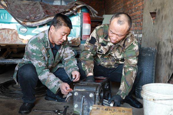 阿木爾林業(yè)局多種經(jīng)營(yíng)公司職工在維修保養(yǎng)挖掘機(jī)的分動(dòng)器總成(王力 攝)