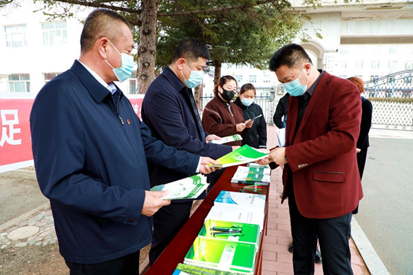 阿木爾林業(yè)局在人員密集場所設立宣傳站,向職工群眾宣傳森林認證相關知識(王力 攝)