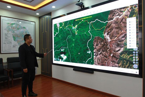 圖強林業(yè)局防火辦工作人員通過森林防火感知系統(tǒng)平臺查看區(qū)域內的防火動態(tài)(趙明 攝)