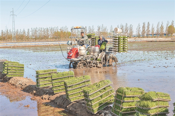 連日來,玖成水稻種植合作社的水稻插秧工作緊張有序地進行。截至24日10時,播種水稻秧苗4萬畝。袁勝海高興地說:“今年能比計劃提前一天時間完成播種任務,得益于合作社大力推廣科學種植技術。”