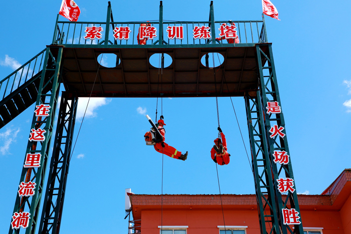 阿木爾林業(yè)局專業(yè)撲火隊(duì)員進(jìn)行索滑降訓(xùn)練(王力 攝)