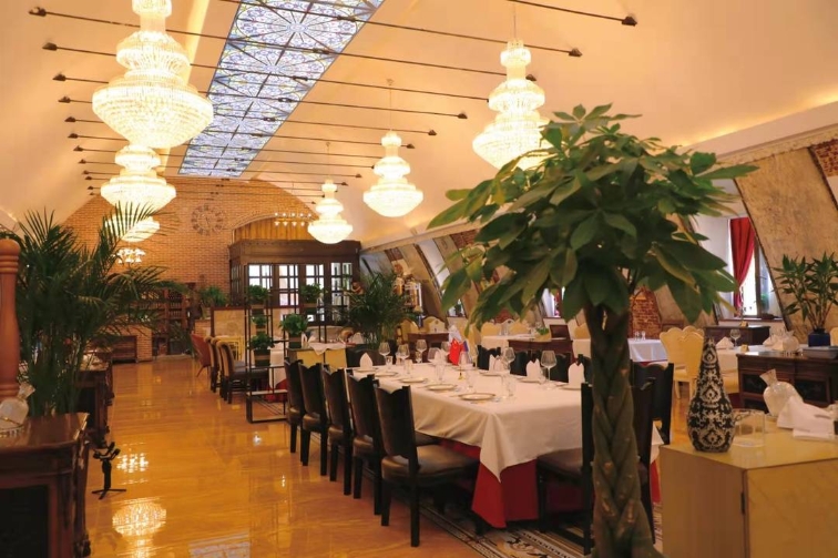 如今,江畔的游人發(fā)現(xiàn),這座百年機(jī)車庫(kù)已經(jīng)“敞開(kāi)心扉“,向大家展露它靚麗的容顏。昔日的圍欄內(nèi),機(jī)車庫(kù)的主體變成了一座精致的西餐廳——1902俄式西餐廳。走進(jìn)機(jī)車庫(kù)變身的主大廳,恢弘的穹頂仿佛在向人們?cè)V說(shuō)著它百年的滄桑,大氣的歐陸裝飾仿佛在宣告它未來(lái)的輝煌。