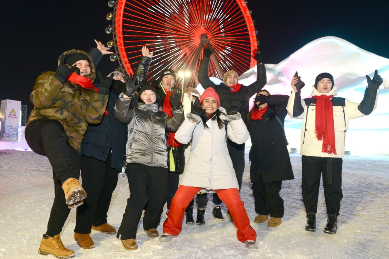 當(dāng)天上午,在雪博會(huì),來自黑龍江大學(xué)的各國(guó)留學(xué)生代表與中國(guó)青少年結(jié)對(duì)互動(dòng),互贈(zèng)新春禮物,表達(dá)對(duì)即將迎來的兔年美好祝福。中外青少年小手拉大手,共游太陽島雪博會(huì),鯉魚躍龍門、圓夢(mèng)啟程、雪冠博覽等雪雕雪景讓大家流連忘返。世界各國(guó)青少年一起雕刻“宇航員”雪雕,送上春聯(lián)祝福語,體驗(yàn)了中國(guó)傳統(tǒng)文化和濃濃的年味,表達(dá)了對(duì)世界文化共融的美好祝愿。