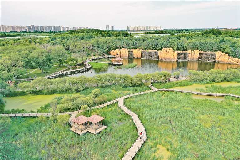 16日,陽光明媚,空氣清新,哈爾濱市迎來了好天氣。太陽島上,草木茂盛,百花爭(zhēng)艷,許多本地市民和南方游客組團(tuán)來到這里避暑游玩。有的游人搭起帳篷野餐,有的游人走上濕地棧道觀賞美麗風(fēng)景。孩子們玩過各種游樂項(xiàng)目后,再與小鹿、松鼠等小動(dòng)物來個(gè)親密接觸。