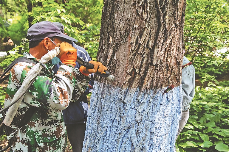已“打針”的楊樹(shù)。本報(bào)記者 劉瑞攝