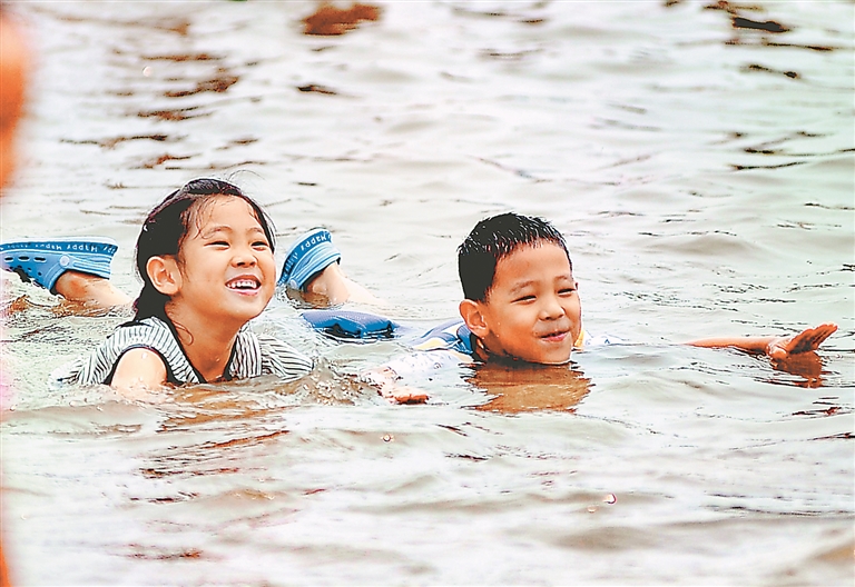 日前,哈爾濱市江北公路大橋附近的公益沙灘浴場內,許多市民帶著孩子在戲水納涼。這處沙灘浴場面積有數(shù)百平方米,水中最深處只有半米多,周圍設置了隔離帶、安全網。孩子們盡情玩樂,有的在學游泳、有的玩水槍、有的在堆沙子、有的在挖“水渠”,叫喊聲、歡笑聲不絕于耳。