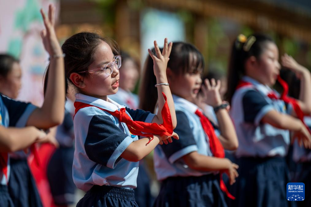 9月30日,北京市西城區(qū)京華實驗學(xué)校學(xué)生在慶祝中華人民共和國成立75周年暨“我愛我的美麗祖國”主題教育活動上表演節(jié)目。新華社記者 金良快 攝
