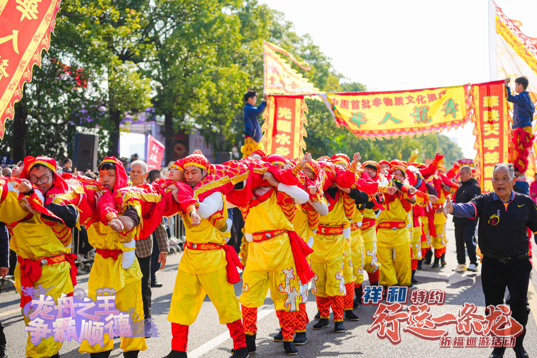 解鎖龍文化,體驗新玩法;打造新民俗,巡游好歡樂?!靶羞\一條龍”祈福巡游活動是順德全新打造的龍舟文化新民俗,現(xiàn)已成功舉辦兩屆。巡游以“拜龍母”“龍眼點睛”等民俗儀式為核心,凝練“行龍運,接龍?!钡脑⒁猓屖忻裼慰徒嚯x感受民俗活動的獨特魅力。