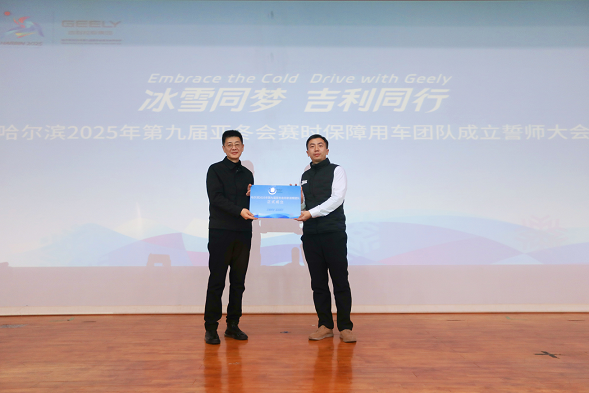 在莊重而熱烈的氛圍中,現(xiàn)場隆重舉行了乘用車保障團隊授旗儀式。駕駛員們整齊列隊,許下了鄭重的承諾:“精準調度,安全駕駛,嚴格守時,真情服務。高效整備,細致維護,保障有力,穩(wěn)健運行。全力實現(xiàn):零投訴、零延誤、零事故。用真情護航,用智慧開道,冰雪同夢,吉利同行?!?/p>