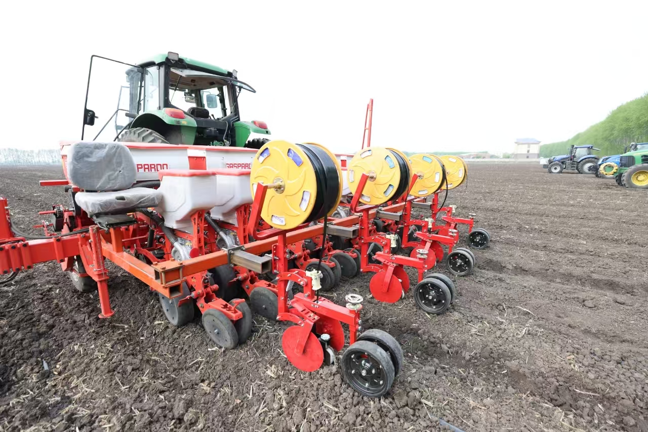 走進(jìn)新華鄉(xiāng)康英華農(nóng)業(yè)種植合作社的耕地,3臺播種機(jī)轟鳴運轉(zhuǎn),正在田間勻速前行,進(jìn)行玉米播種作業(yè)。該合作社理事長康英華介紹:“我們從五月初開始,每天播種320到350畝左右,現(xiàn)在新型的播種機(jī)精準(zhǔn)度比起以前提高了很多,大大提升了播種效率?!毕冗M(jìn)的機(jī)械設(shè)備為農(nóng)業(yè)生產(chǎn)注入了強(qiáng)大動力,而糧食產(chǎn)量的提升還需“良種”、“良法”來配套??涤⑷A選用了適宜該地塊大壟雙行密植栽培模式的玉米品種,每畝產(chǎn)量可達(dá)2000斤。