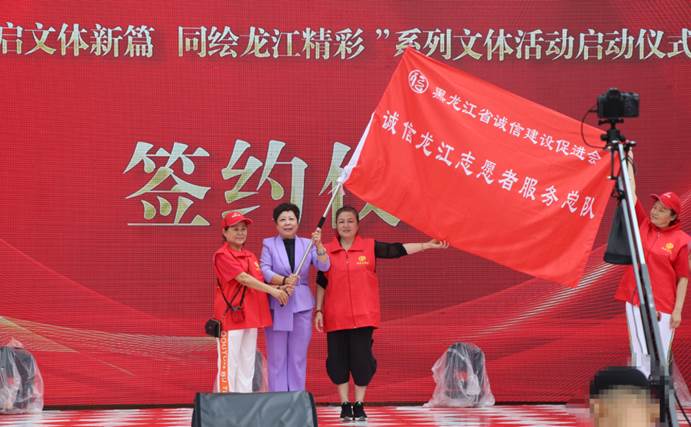 在誠信龍江志愿服務(wù)總隊(duì)成立儀式上,張波會(huì)長(zhǎng)莊重地將象征“奉獻(xiàn)、友愛、互助、進(jìn)步”精神的“誠信龍江志愿者服務(wù)總隊(duì)”隊(duì)旗,授予首任隊(duì)長(zhǎng)。這面旗幟的傳遞,標(biāo)志著一支服務(wù)社會(huì)、傳播誠信理念的專業(yè)志愿隊(duì)伍正式啟航。未來,志愿者們將深度融入系列文體活動(dòng)的組織、服務(wù)與宣傳,以行動(dòng)詮釋志愿精神,用熱忱擦亮“誠信龍江”品牌,為活動(dòng)成功舉辦和誠信文化播撒注入強(qiáng)勁的志愿力量。