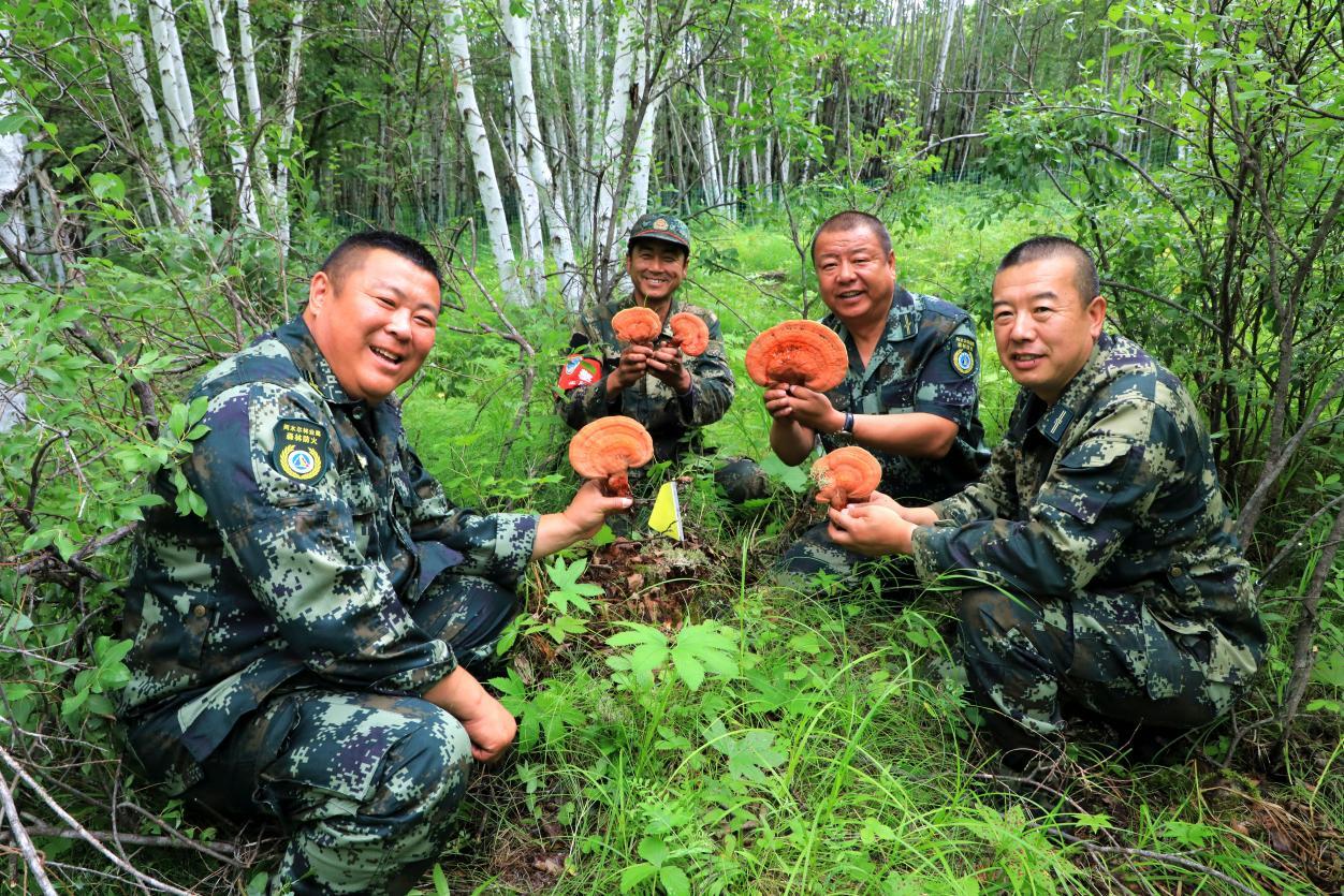 阿木爾林業(yè)局依西林場(chǎng)場(chǎng)級(jí)林長、副林長查看野生靈芝豐收情況(王力 攝)