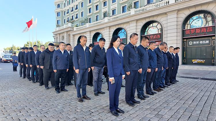 9時,警報聲劃破長空,全體人員莊嚴肅立,向在抗日戰(zhàn)爭中英勇犧牲的先烈們默哀,表達深切緬懷和崇高敬意。