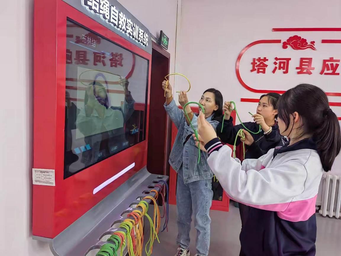 消防安全宣傳教師指導(dǎo)學(xué)生們逃生結(jié)繩方法(孫珍珍 攝)