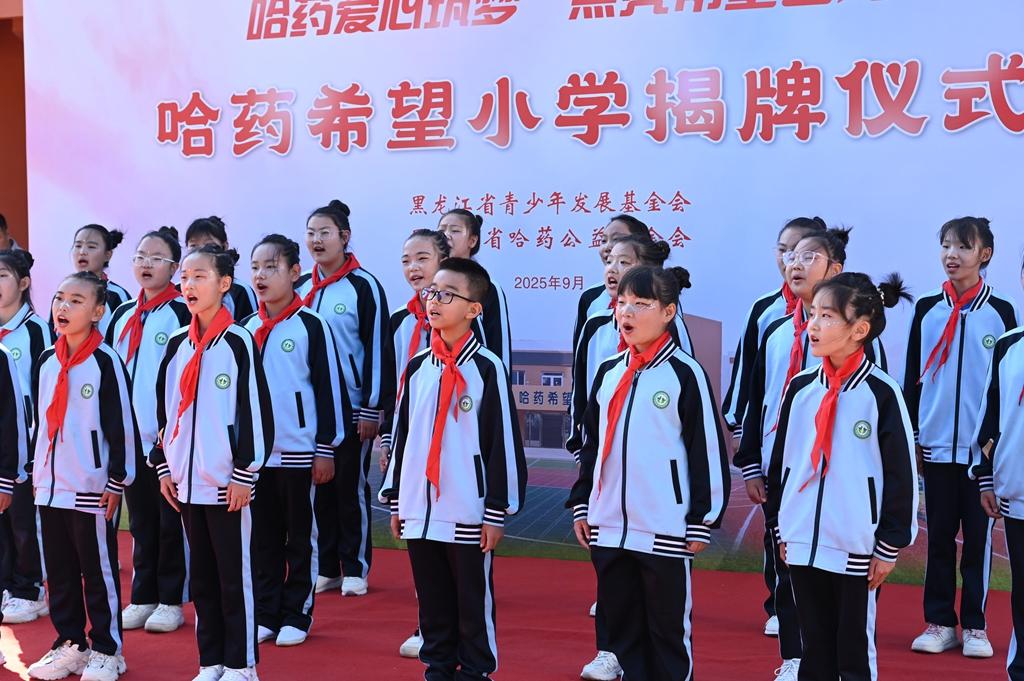 隨后,領(lǐng)導(dǎo)嘉賓為哈爾濱市香坊區(qū)幸福鎮(zhèn)哈藥希望小學(xué)揭牌,標(biāo)志著這所學(xué)校將以嶄新面貌,承載更多夢(mèng)想與希望,開啟新的篇章。