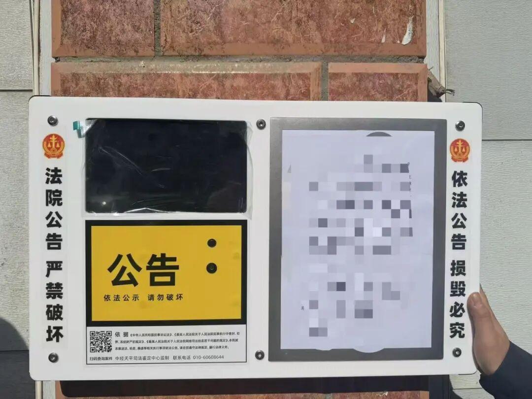 海倫市人民法院在執(zhí)行趙某與某公司買賣合同糾紛一案中張貼拍賣房屋公告(鄧育彤 攝)