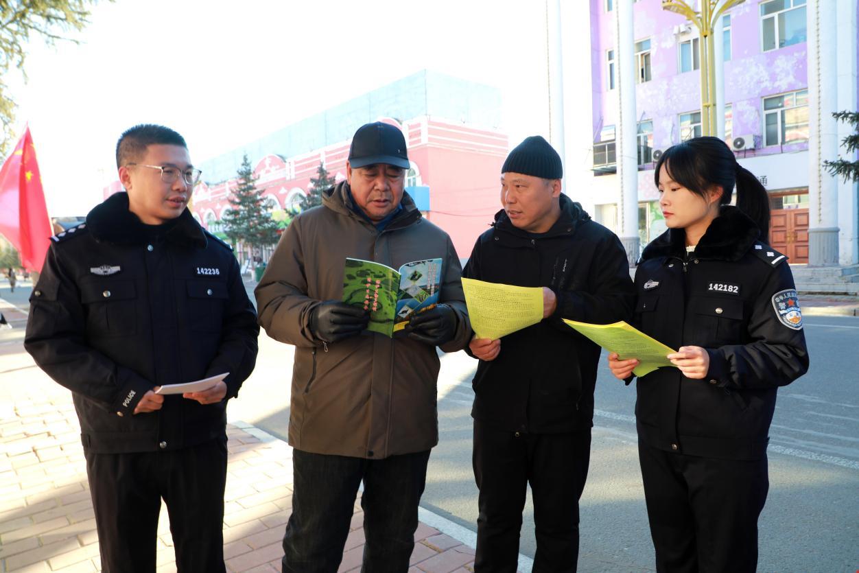 在林業(yè)局中華路繁華路段,聯(lián)合宣傳小組設(shè)立宣傳臺,鮮艷的宣傳條幅在人群中格外醒目,工作人員向過往居民發(fā)放宣傳單,細致解讀《中華人民共和國野生動物保護法》《黑龍江野生動物保護條例》等法律法規(guī)核心條款。為增強宣傳實效,工作人員結(jié)合反面典型案例,明確闡明非法獵捕、販賣鳥類行為的違法屬性及法律后果,引導(dǎo)居民自覺抵制并主動制止破壞鳥類等野生動物資源的行為。針對一線職工群體,宣傳小組還通過鳥類圖譜展示,系統(tǒng)普及鳥類知識與保護意義,推動形成“全社會參與保護、人人有責(zé)”的良好氛圍。