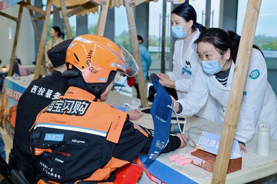 秋冬季節(jié)多發(fā)流感,全國(guó)各地、各級(jí)工會(huì)等主管部門聯(lián)合淘寶閃購(gòu),持續(xù)開(kāi)展暖冬物資發(fā)放、免費(fèi)體檢等活動(dòng)。在貴陽(yáng)、銀川、溫州、武漢等城市,騎士日活動(dòng)還設(shè)置了專門的體檢車,為騎士提供便捷的健康檢查,在南京、成都等地開(kāi)展義診。