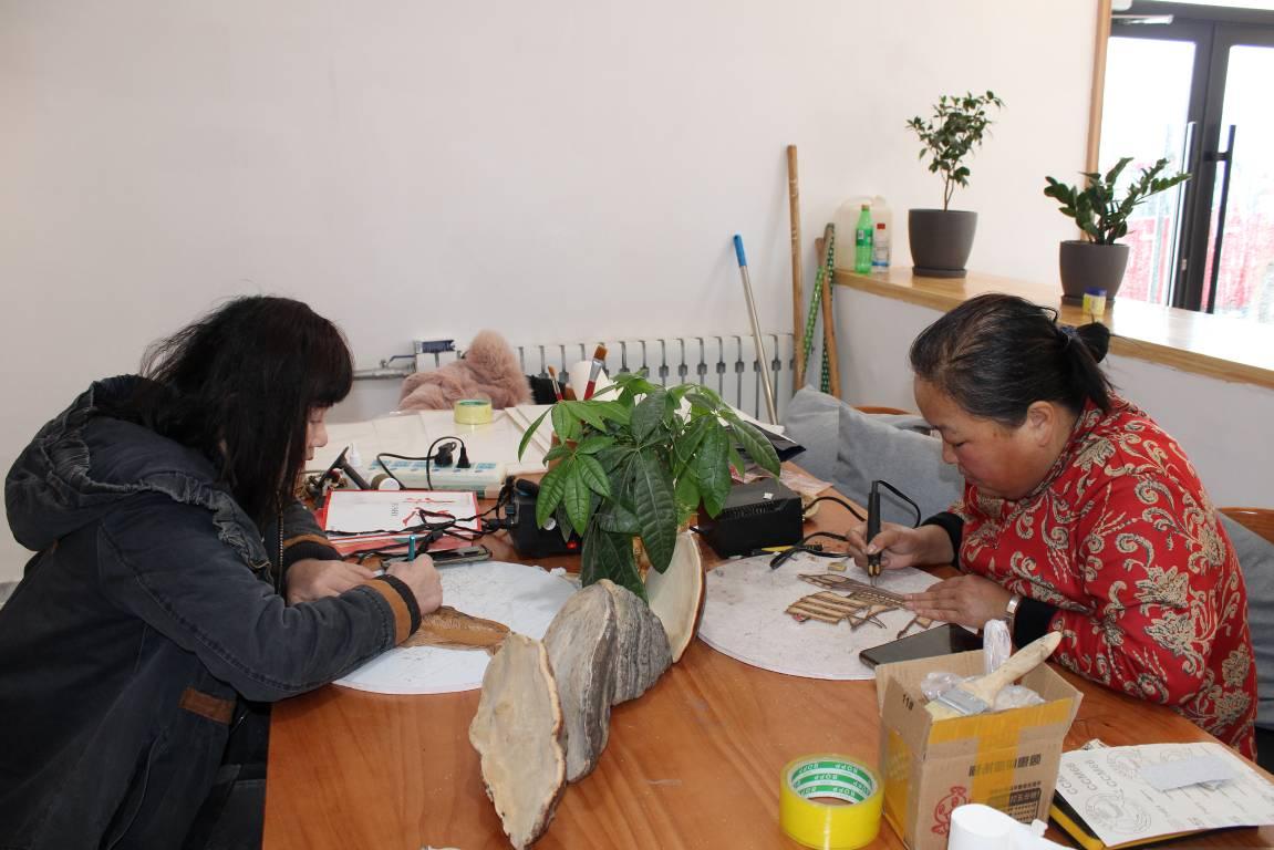 林場(chǎng)工作人員利用樺樹皮精心加工為各類主題的樹皮畫(董淑玲 攝)