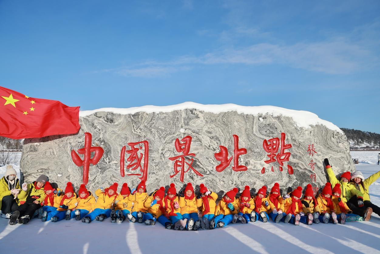 登上觀景臺那一刻,孩子們便踮起腳尖指向遠(yuǎn)方,擠在欄桿邊,俯瞰龍江在腳下劃出完美的Ω形弧線。“龍江第一灣我們來了”孩子們的喊聲整齊劃一,隨即爆發(fā)出一陣勝利的歡呼。寒風(fēng)凜冽,卻吹不散他們的熱情?!斑@是我們第三次帶孩子來這里,每一次都有新收獲?!睅ш犂蠋熣f,龍江第一灣的壯美雪景與獨特地理風(fēng)貌,不僅讓南方孩子直觀感受到冰雪的魅力,更讓他們在親身實踐中收獲知識與成長。這場早已超越普通的研學(xué)之旅,成為連接南北的溫情紐帶,讓冬日嚴(yán)寒因這份童真與堅守而格外溫暖。