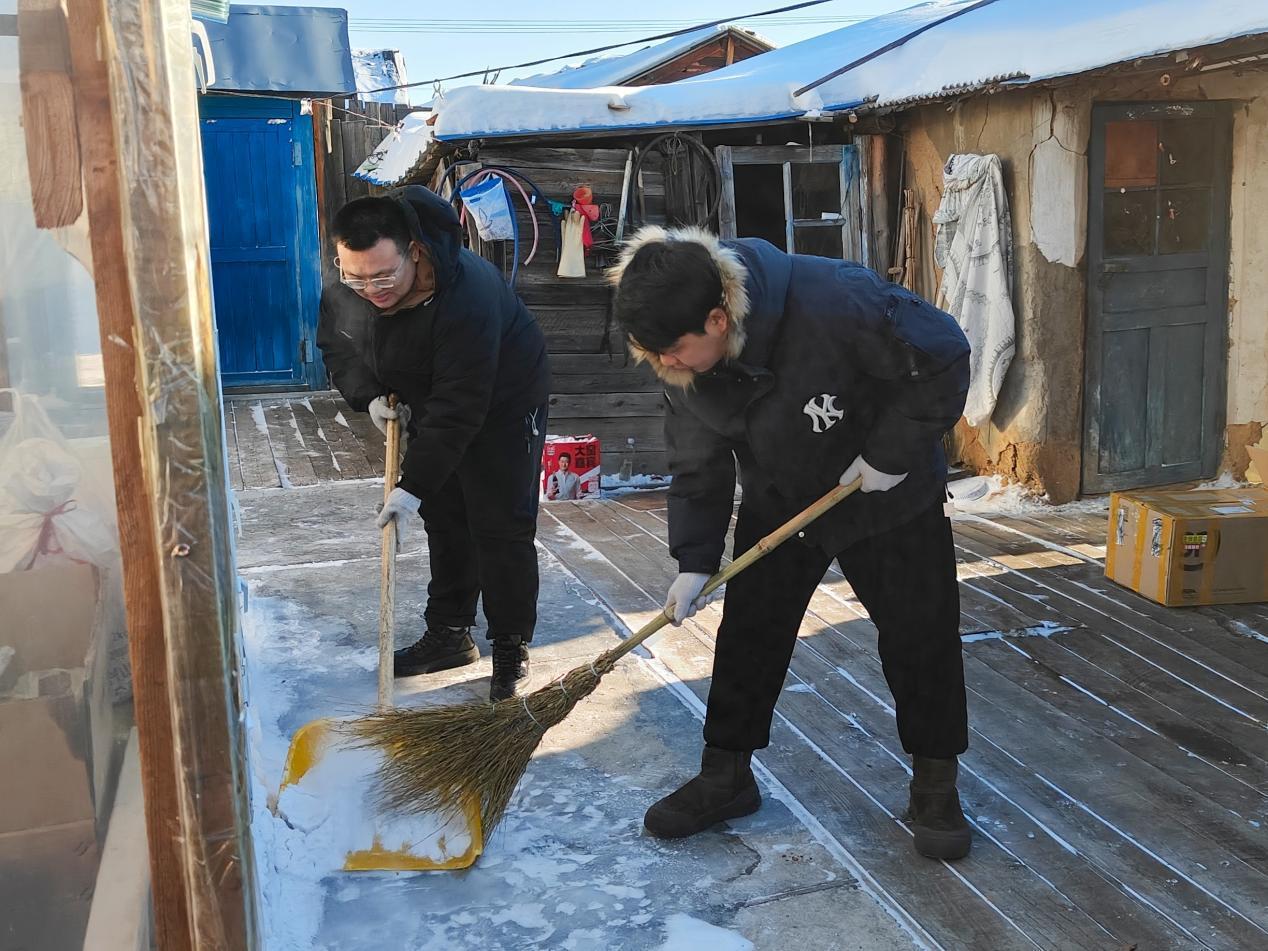 林場黨員先鋒隊(duì)隊(duì)員幫助困難職工清理院落積雪(陶文玲 攝)