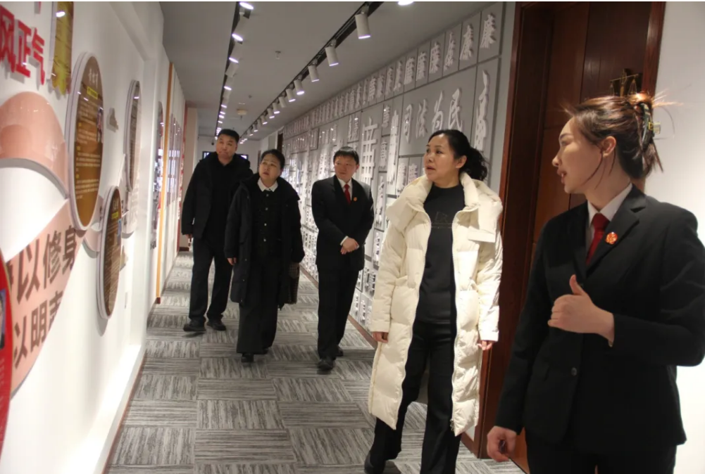 代表一行先后參觀了肇東市法院審判法庭大廳、科技法庭、訴訟服務(wù)中心、黨史活動室、廉政文化長廊等場所,零距離了解司法便民利民各項(xiàng)舉措,沉浸式體驗(yàn)新時代法院文化建設(shè)。