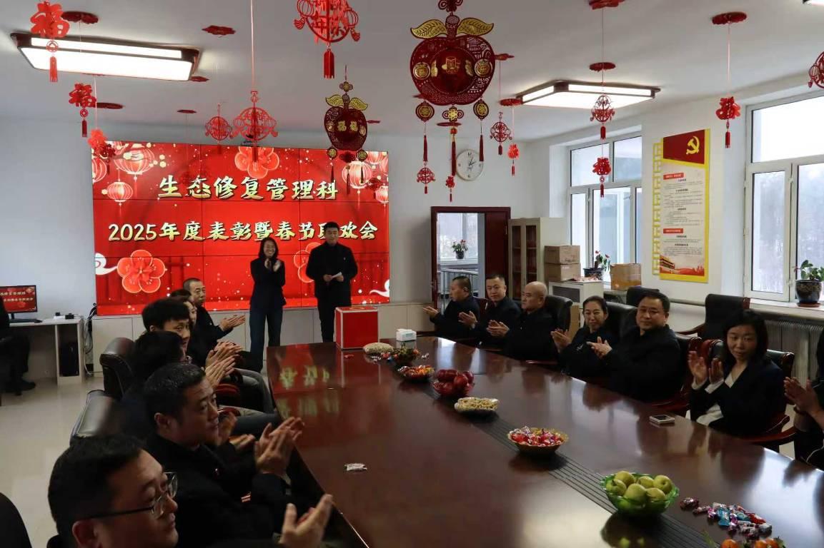 活動在歡快的音樂中拉開帷幕。主持人深情回望2025年,這一年,科室全體同仁深耕生態(tài)修復一線,頂風冒雨、攻堅克難,圓滿完成各項工作任務,用實干守護綠水青山,用堅守詮釋生態(tài)人的初心使命。生態(tài)修復管理科科長于召民為活動致辭,既肯定了科室全體干部職工過去一年的辛勤付出,也為2026年工作指明方向、注入動力,贏得全場陣陣掌聲。
