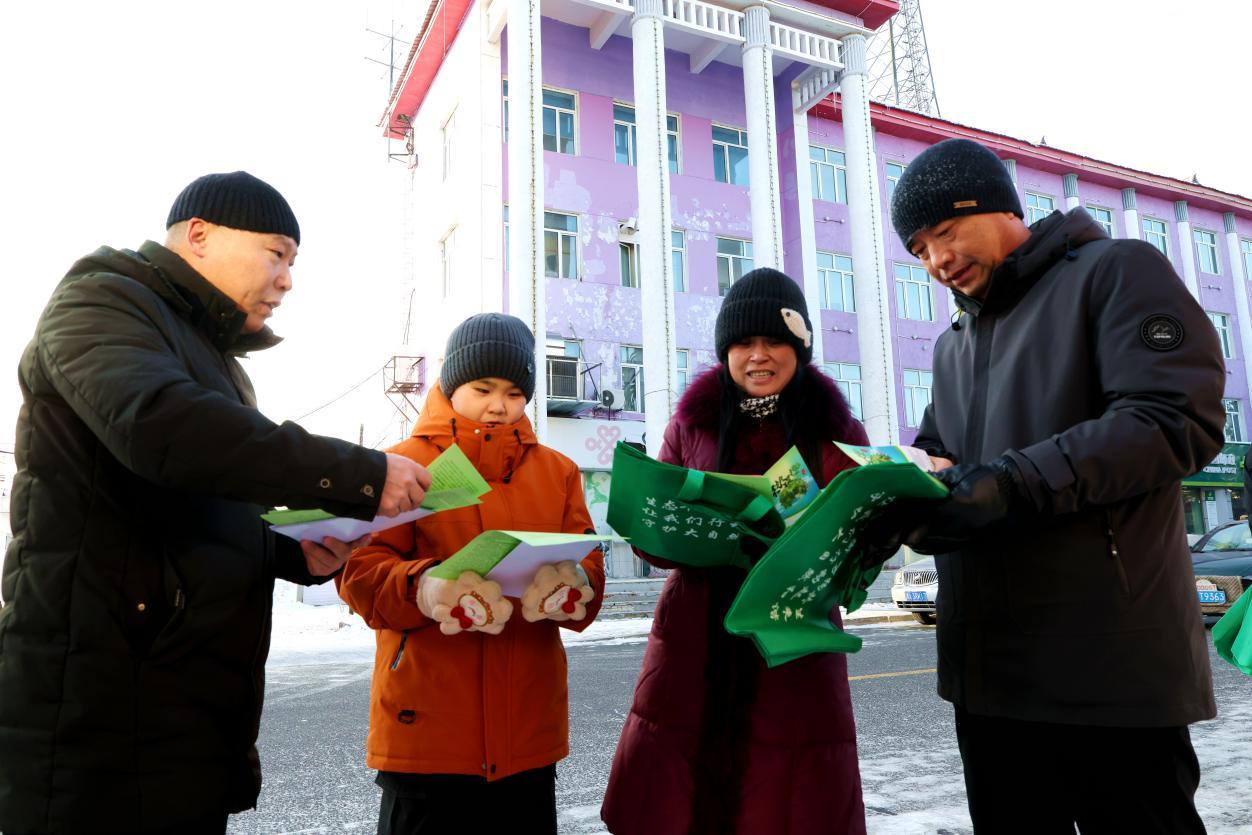 阿木爾林業(yè)局聯(lián)合宣傳小組在人員密集場所,拉起條幅營造濃厚的濕地保護(hù)氛圍(王力 攝)